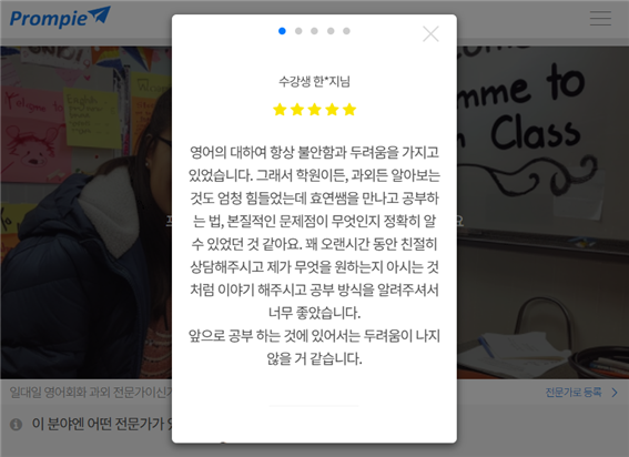 <사진3> ▲ 과외 플랫폼 프롬피의 리뷰 시스템. 별점과 리뷰가 이후 매칭에 결정적 영향을 미친다. (출처: 프롬피)