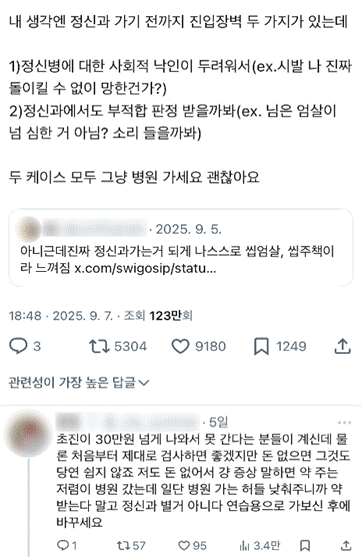 <사진 1▲> 정신건강서비스 이용을 어렵게 하는 요인에 관한 누리꾼 의견. (출처: X)